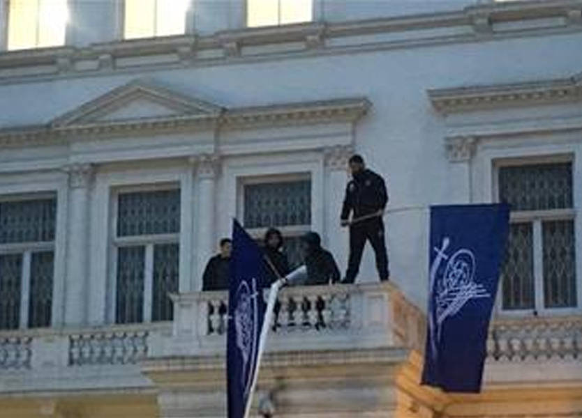 واضافت المتحدثة "تم توقيف الاربعة نحو الساعة 18,40 بداعي الاضرار باملاك الغير ولوجودهم بشكل غير قانوني في مكان دبلوماسي".