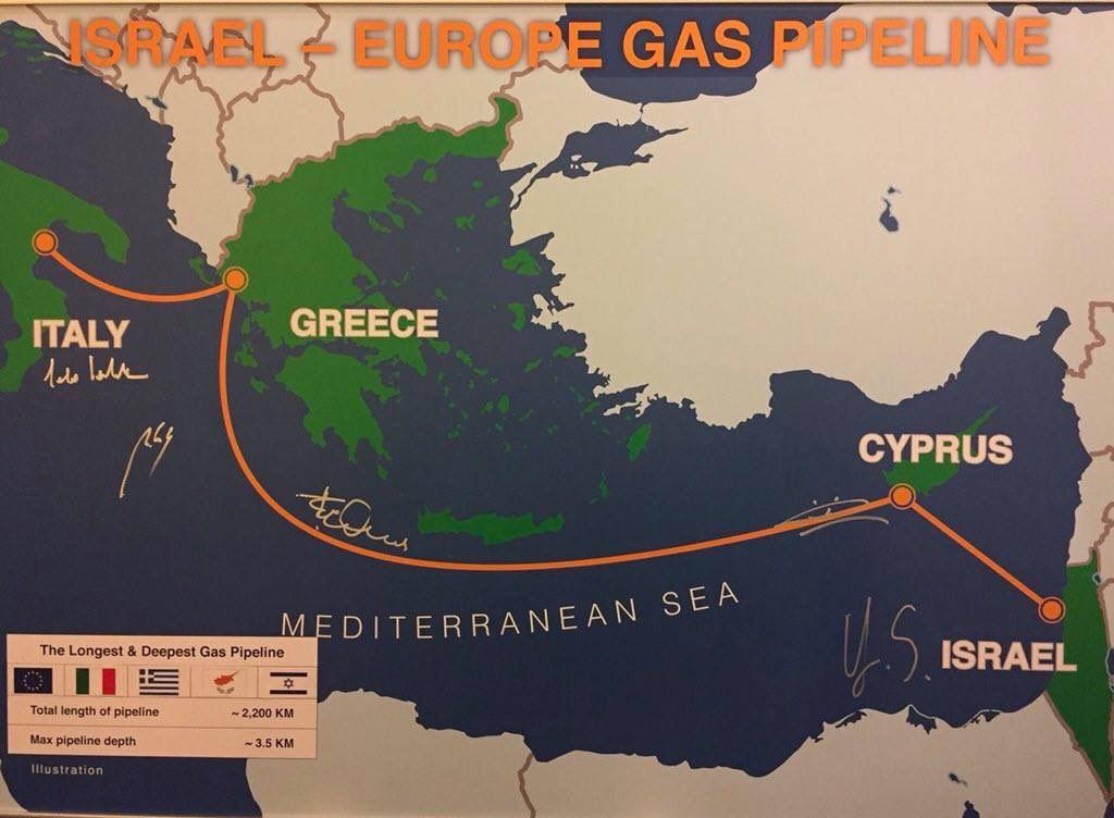 إسرائيل تتوقع قرارا في 2019 ببدء مد أنبوب الغاز إلى أوروبا. ووقع وزراء الطاقة من إسرائيل وقبرص واليونان وإيطاليا يوقعون على خارطة لمسير بناء الأنبوب.